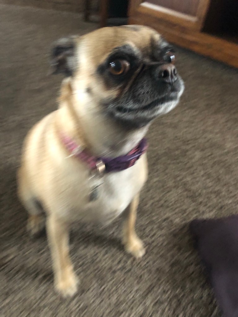 A sleeping dog, laying.